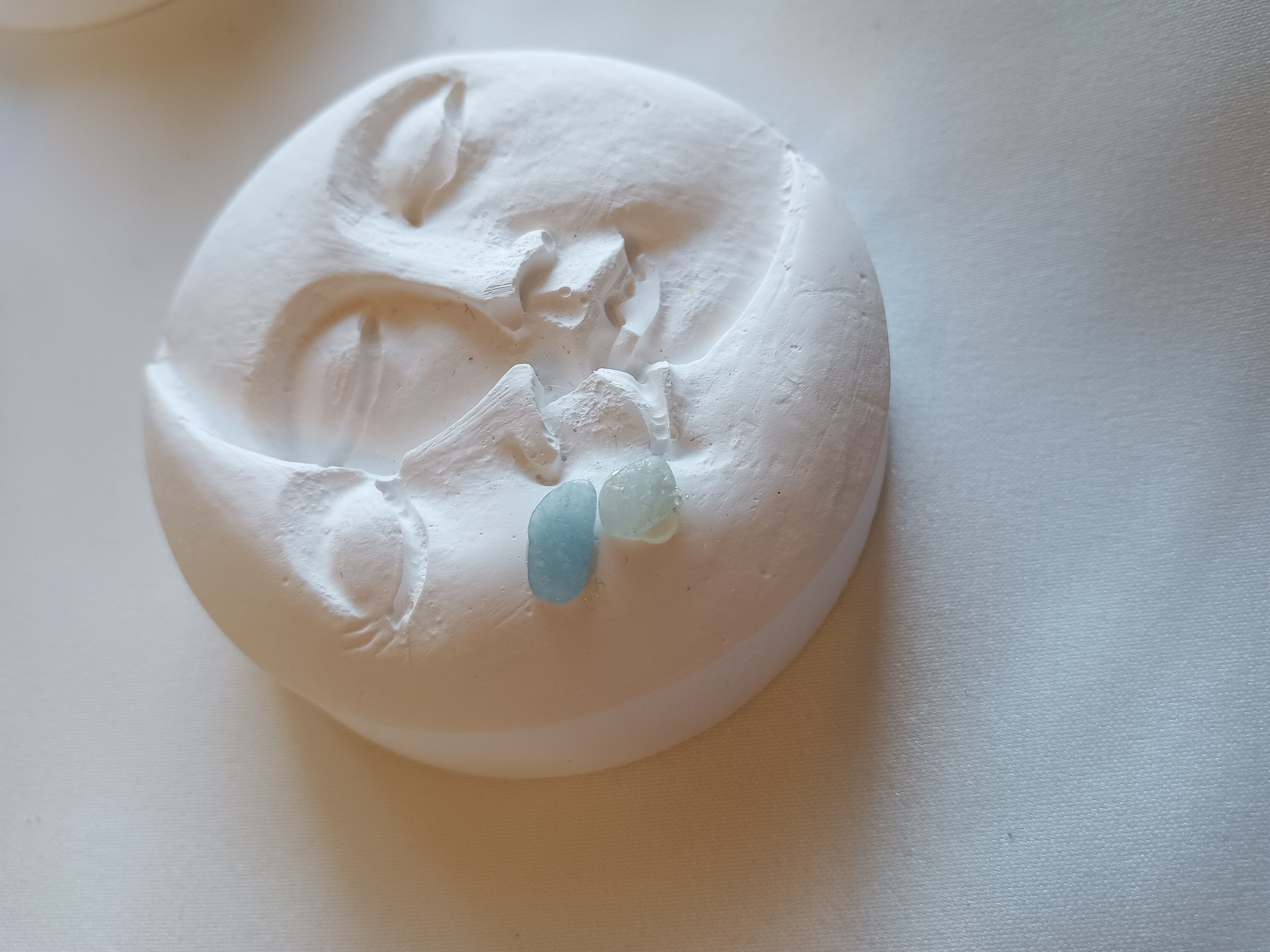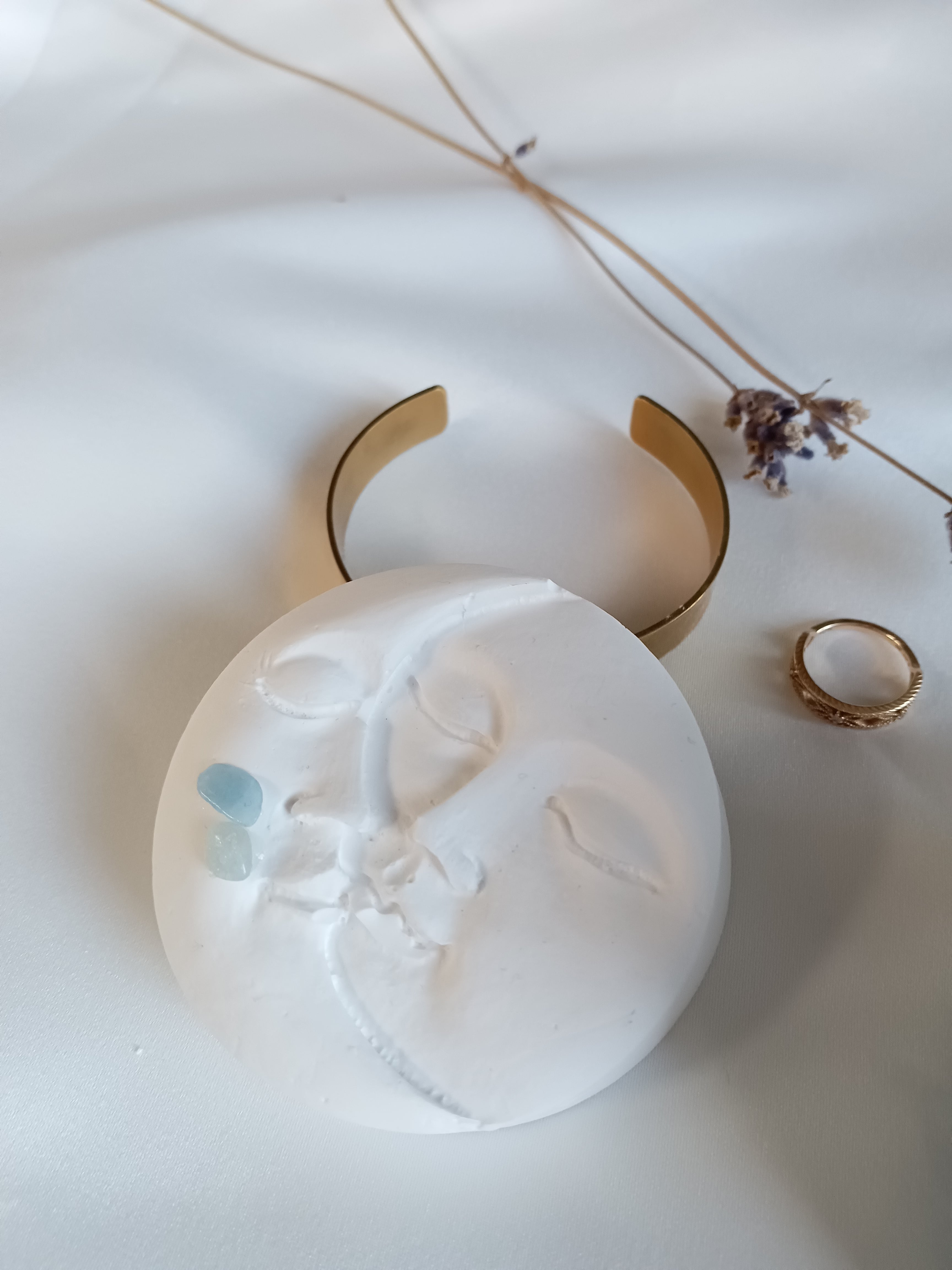 月と太陽のアロマストーンにアクアマリンの天然石をつけています