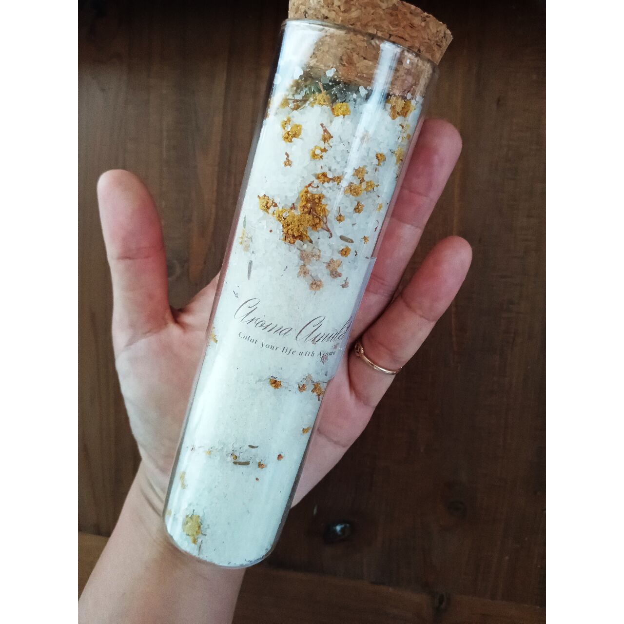 原料▶塩:死海塩 ドライハーブ:ミモザ